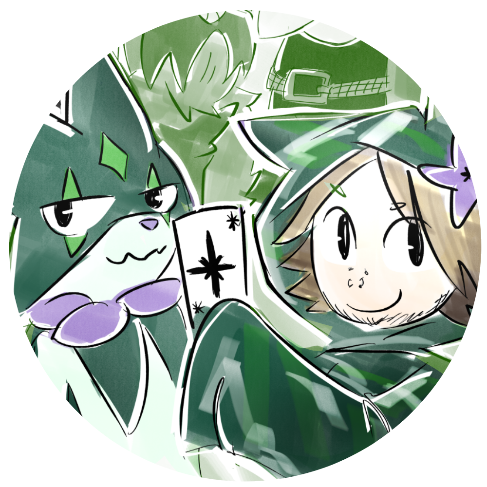 Kuribo never had many friends growing up, so he spent his time reading strange and even scary fairytales and living in imaginary worlds. But one day, he met a Mimikyu that shared his love of dark fairytales. Now, with his team of fairy Pokémon by his side, he doesn’t have to imagine anymore; he lives among his fairy friends and plays pranks on boring humans!